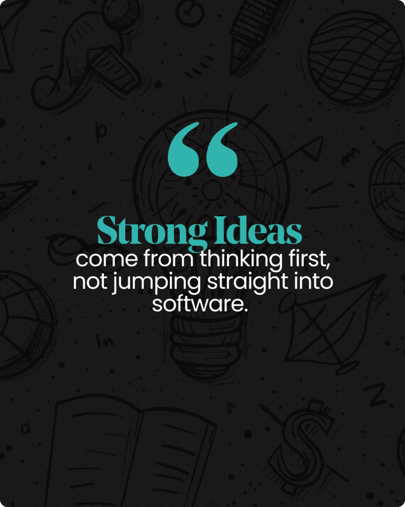 And we do this because strong ideas come from thinking first, not jumping straight into software.